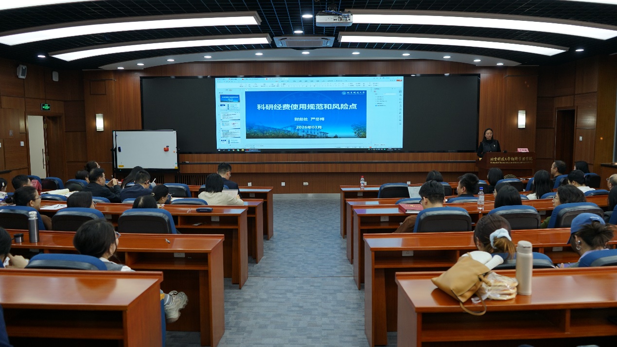 财务处副处长严冬梅围绕学校最新科研经费管理制度,重点讲解了科研经费使用的基本原则、科研经费类别、科研经费使用规范和风险点,结合实例对经费预算执行、支出规范、结题验收等环节进行细致说明。专题学习进一步强化了教职工经费合规使用的意识和能力,教育引导教职工摒弃“侥幸心理”,始终坚守廉洁底线。