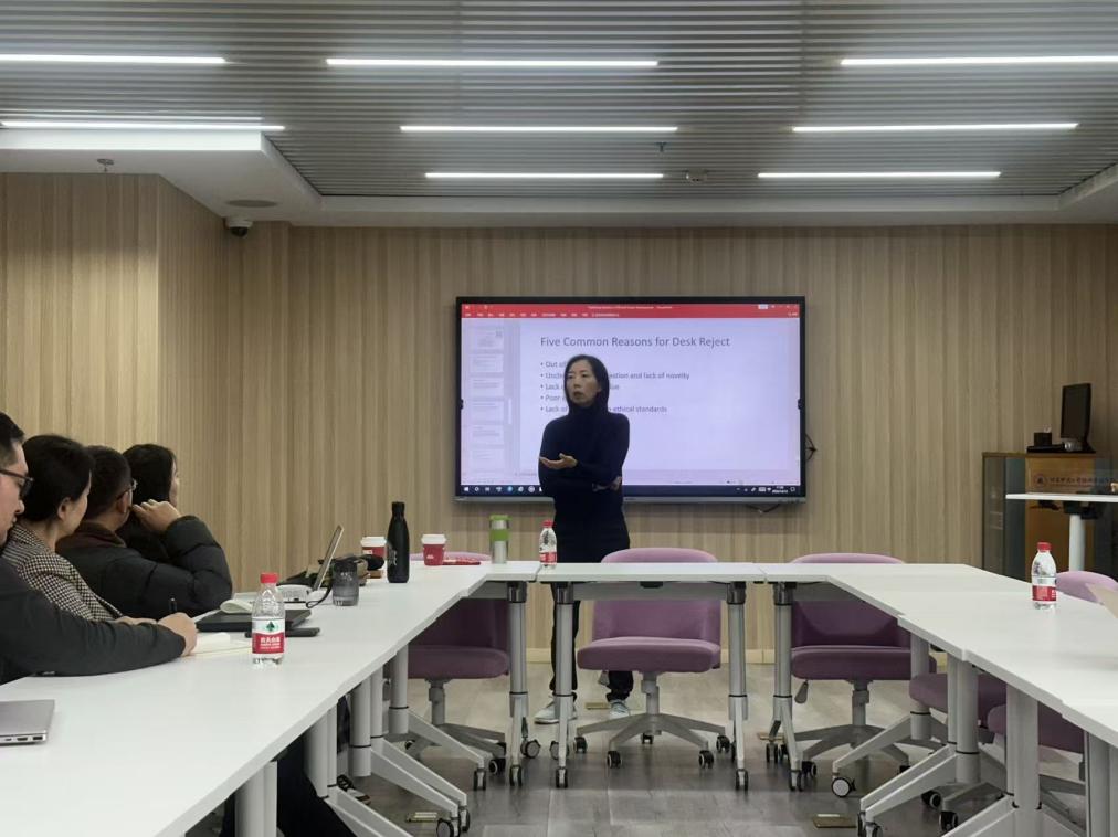 2025年12月12日,成人a片 工商管理系·期刊编委面对面》系列讲座第四期在经管楼1205举办。讲座特邀 Journal of Product Innovation Management(JPIM)联合主编、佛罗里达州立大学Ruby Lee教授担任主讲。成人a片多名教师与研究生到场聆听,现场学术氛围浓厚、交流互动充分。